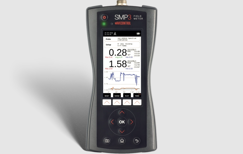 El medidor SMP3 es una solución completamente compatible y flexible capaz de medir desde DC hasta 60 GHz para campos eléctricos y magnéticos. Es un dispositivo multiestándar diseñado para ofrecer la máxima flexibilidad con un uso simplificado.